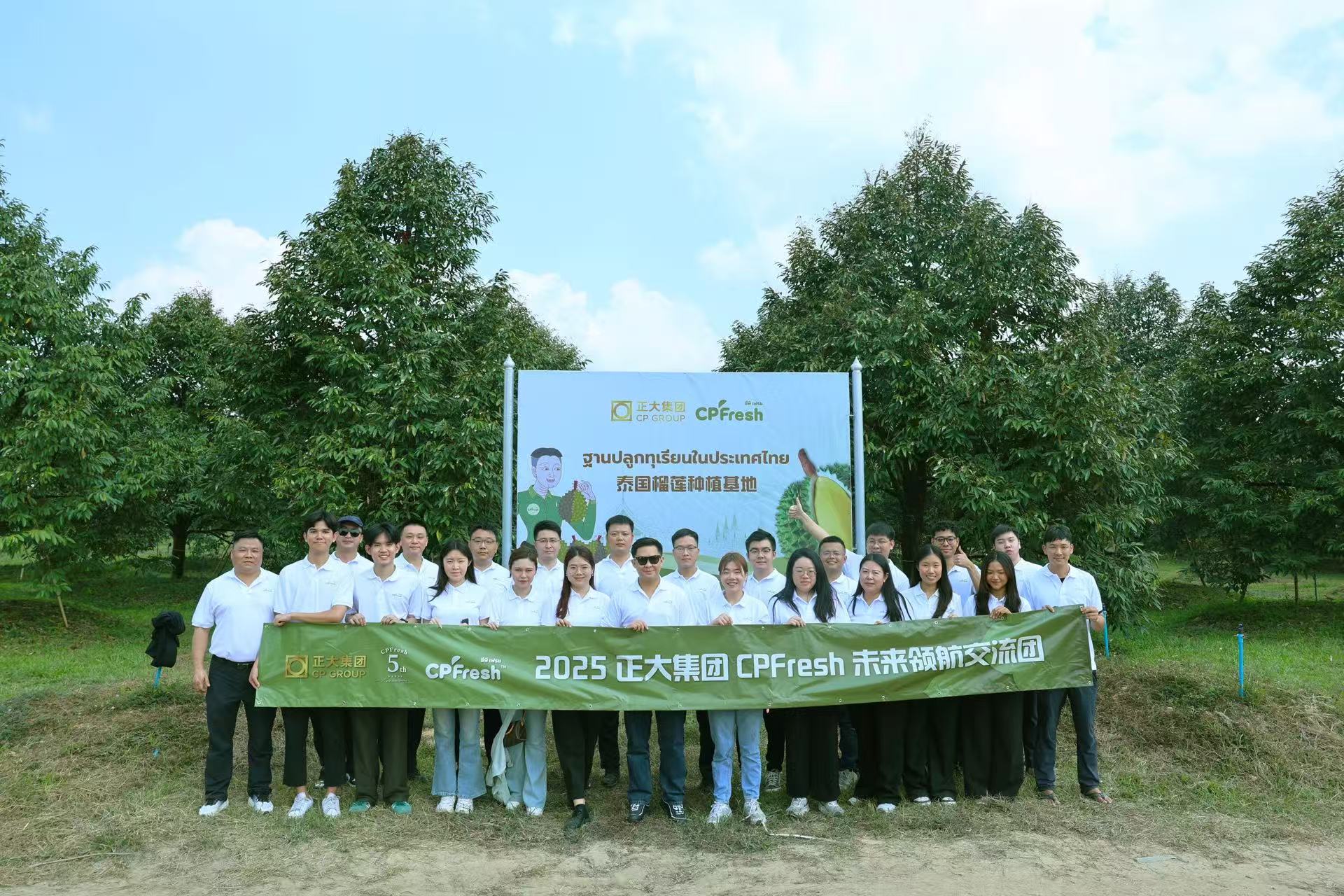 ▲CPFresh正大泰國水果中泰團隊在泰國榴蓮種植基地合影。