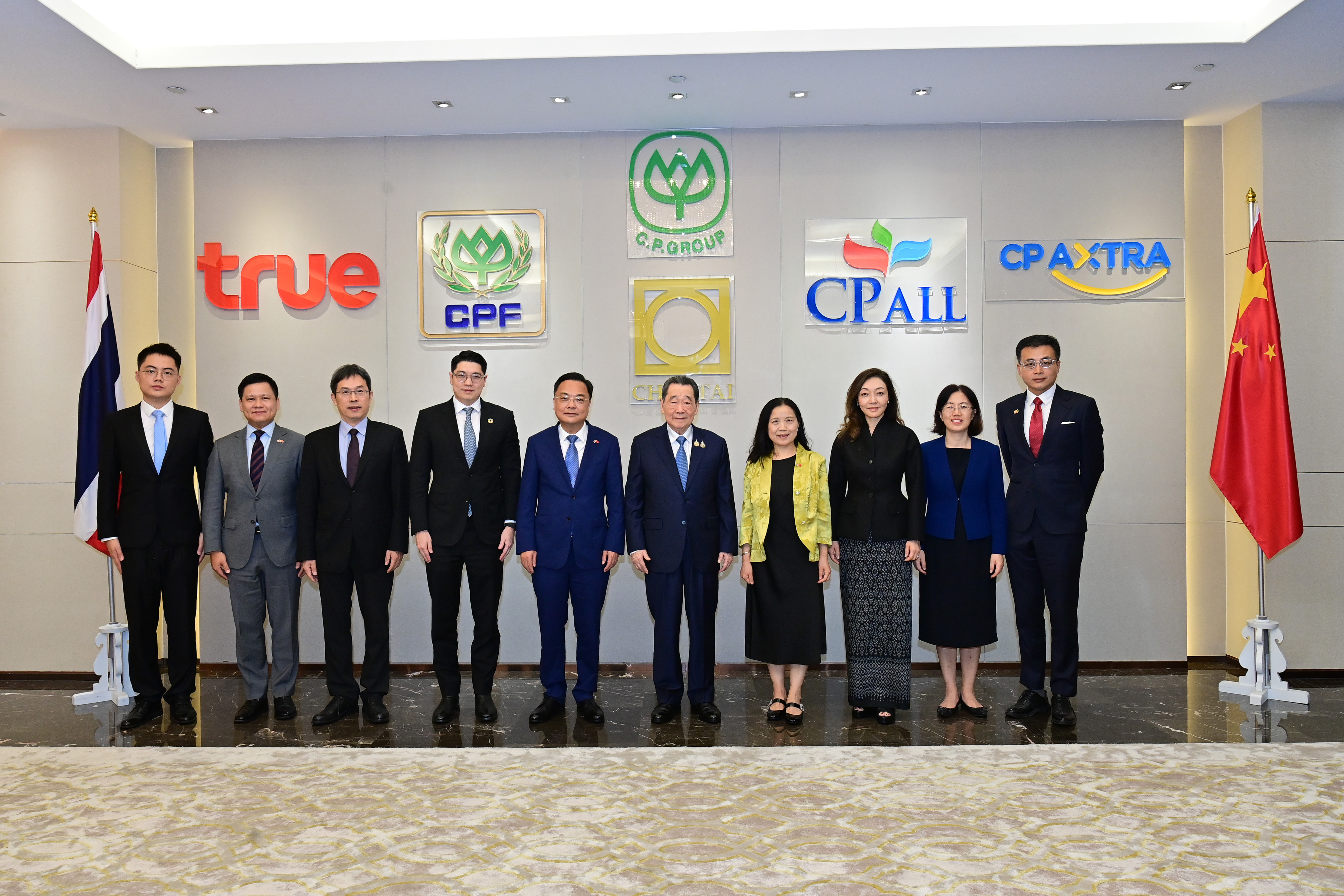 中國駐泰國大使館公使吳志武、經商處公參江偉、公參兼總領事潘瑾、領事柳少澤、大使秘書李世星;正大集團謝吉人董事長夫人康水馨、CP Axtra首席商業官兼萬客隆超市首席執行官謝宇宸、正大集團資深副總裁兼中國戰略發展與合作總裁黃偉偉等參加上述不同活動。