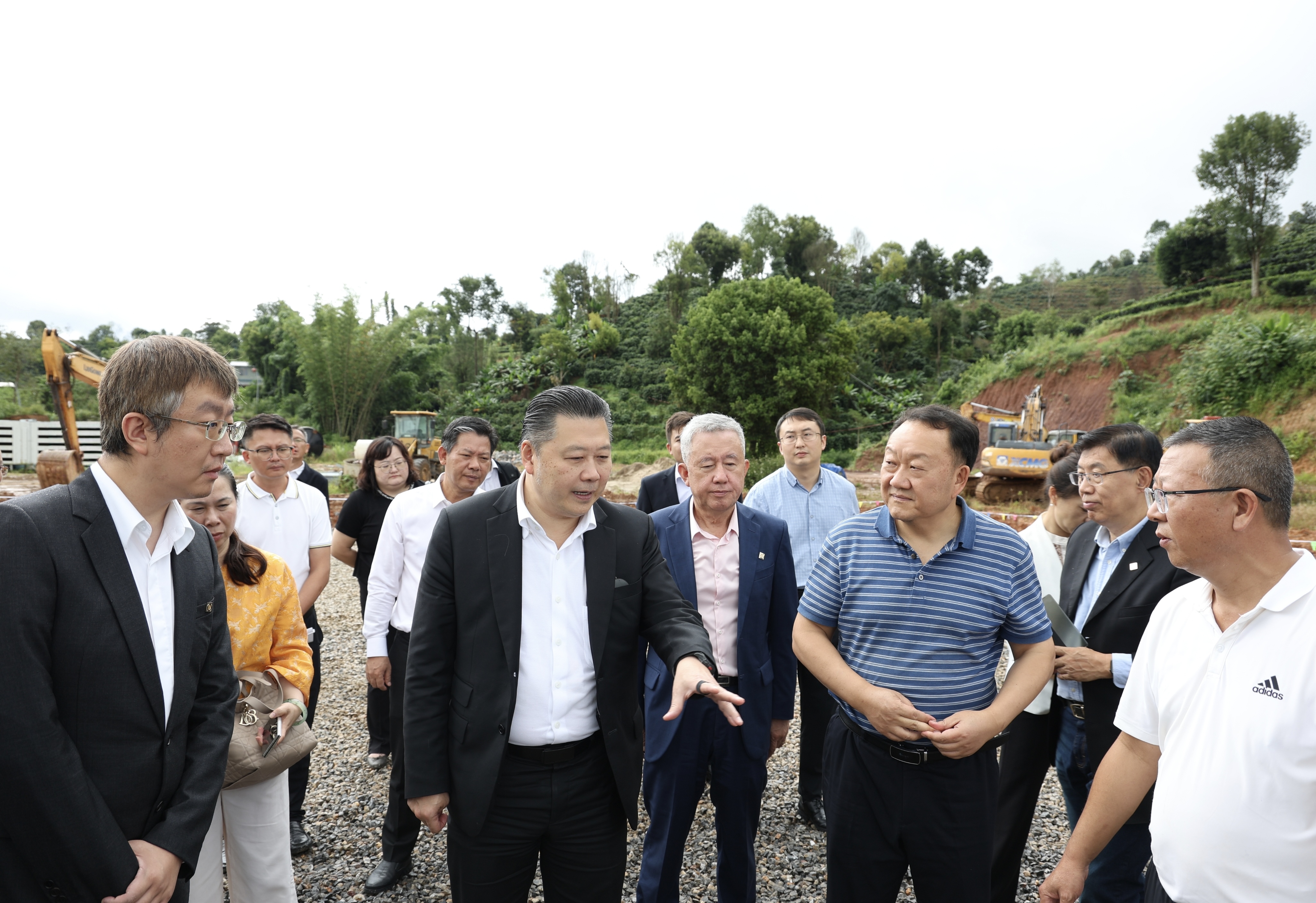 ▲謝吉人集團(tuán)董事長(前排左二)同普洱市委常委、思茅區(qū)委書記胡選坤(前排右二)在項(xiàng)目現(xiàn)場交流。