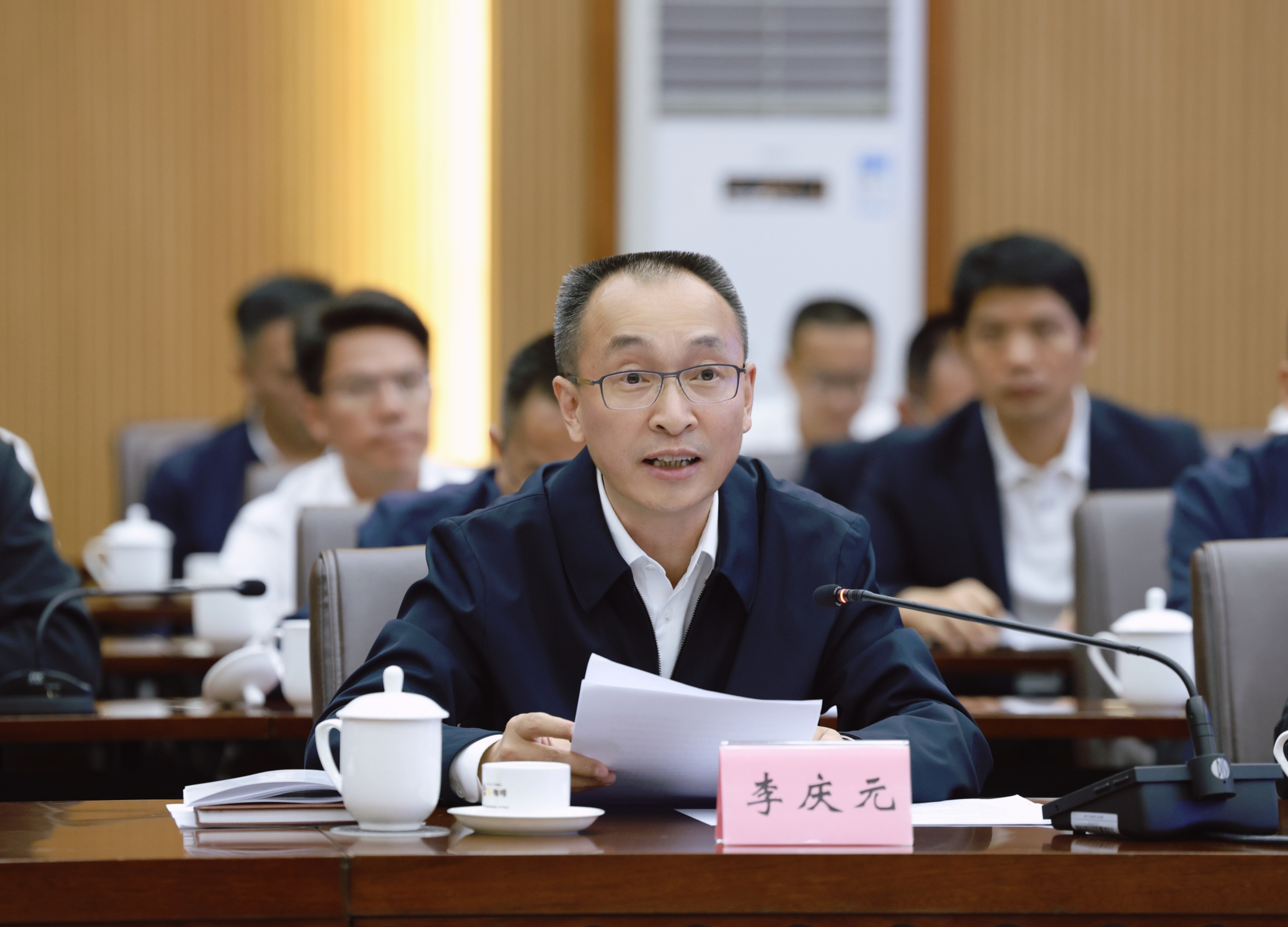 ▲普洱市委書記李慶元在會(huì)上發(fā)言。