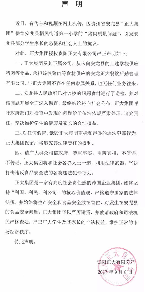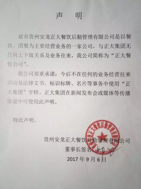 附件:貴州安龍正大餐飲后勤管理有限公司董事長邱飛簽名的聲明材料